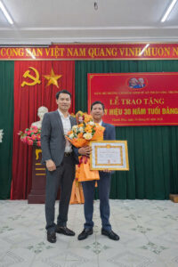 Thay mặt Đảng uỷ, Đ/c Bùi Ngọc Quyết Bí thư Đảng uỷ, Hiệu trưởng Nhà trường đã trao Quyết định và Huy hiệu 30 năm tuổi Đảng cho Đảng viên Nguyễn Hữu Lệ- Chi bộ Chi bộ phòng Hành chính- Tổ chức.