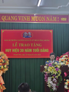 Ngày 24/2/2026, Đảng bộ Trường cao đẳng Kinh tế – Kỹ thuật – Công Thương đã long trọng tổ chức Lễ trao tặng Huy hiệu 30 năm tuổi Đảng cho Đảng viên Nguyễn Hữu Lệ – Chi bộ phòng Hành chính- Tổ chức.