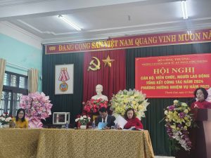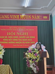 Tại Hội nghị, đồng chí Nguyễn Thị Ngọc – Chủ tịch công đoàn cơ sở đã thay mặt đoàn Chủ tịch Báo cáo kết quả thực hiện nhiệm vụ công tác năm 2024 và phương hướng, nhiệm vụ công tác năm 2025. Báo cáo đã nêu lên những thành tích nổi bật cũng như chỉ ra những điểm còn tồn tại trên tất cả các lĩnh vực tổ chức, quản lí, tuyển sinh, đào tạo, bồi dưỡng, nghiên cứu khoa học, công tác tài chính và thi đua khen thưởng của trường trong năm qua.