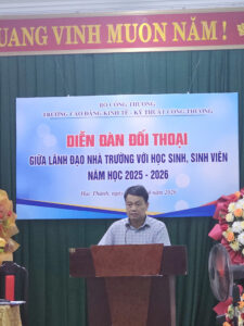 Thực hiện kế hoạch số 168/KH-KTKTCT ngày 14/4/2026 của trường Cao đẳng Kinh tế Kỹ thuật Công thương, nhằm phát huy dân chủ trong nhà trường, tăng cường kênh trao đổi thông tin giữa lãnh đạo nhà trường với học sinh, sinh viên (HSSV), ngày 23/4/2026, Trường Cao đẳng Kinh tế Kỹ thuật Công thương đã tổ chức Diễn đàn đối thoại giữa lãnh đạo nhà trường với học sinh, sinh viên